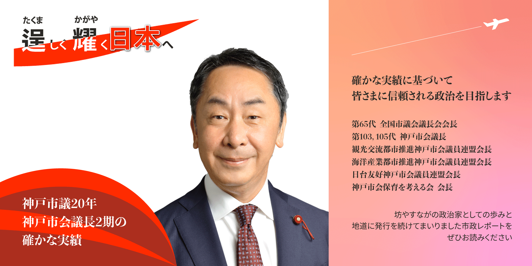 新年明けましておめでとうございます。神戸市会議員の坊恭寿(ぼう やすなが)でございます。 旧年中は、…