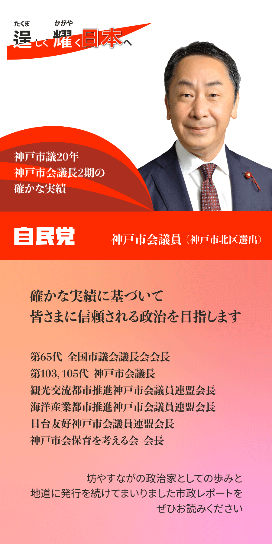 坊 やすなが 元神戸市会議員(神戸市北区選出)活動報告
