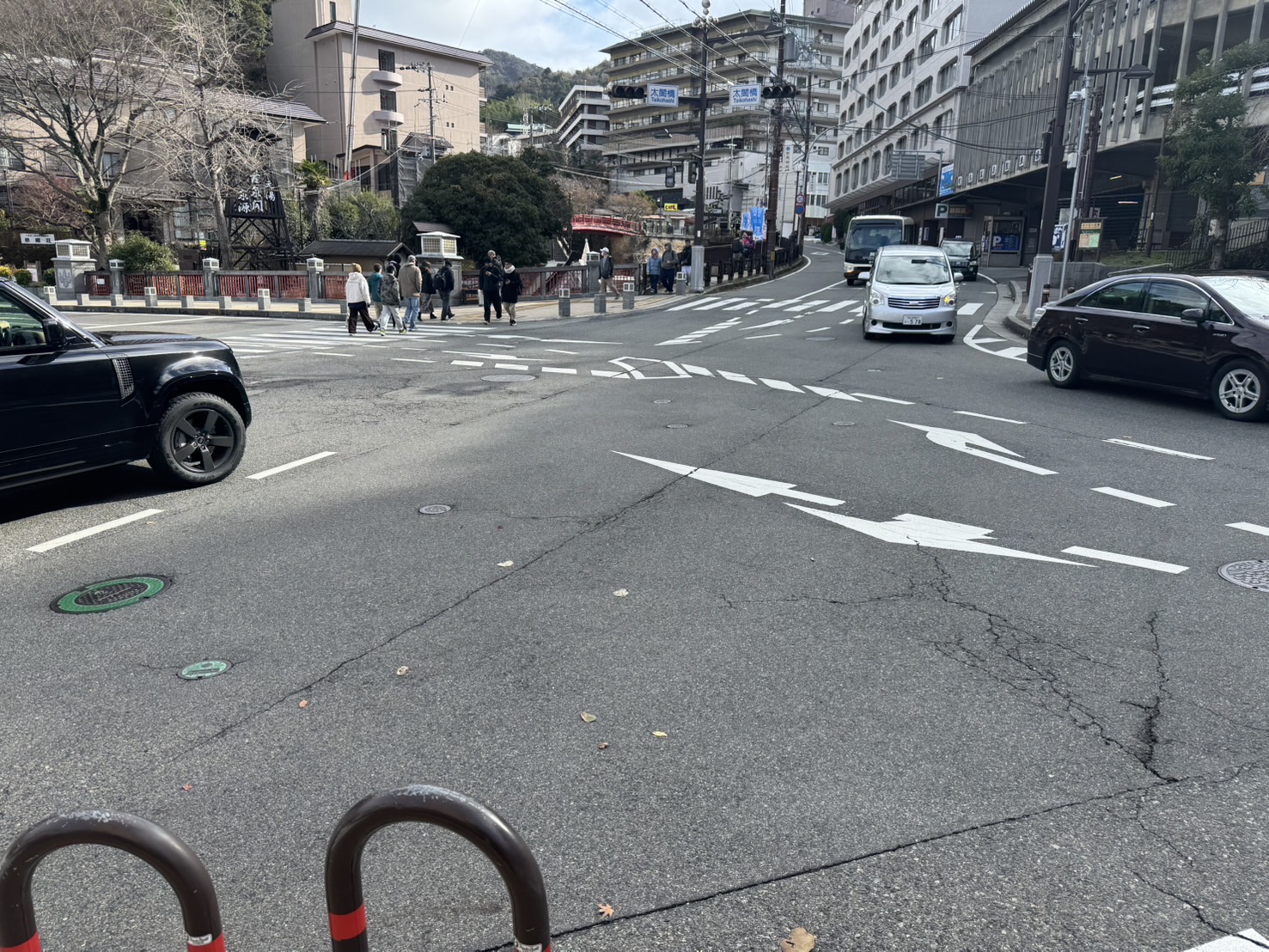 このたび、地域住民の方より、有馬温泉において最も重要な交差点の一つである太閤橋交差点の安全対策についてご相談をいただきました。