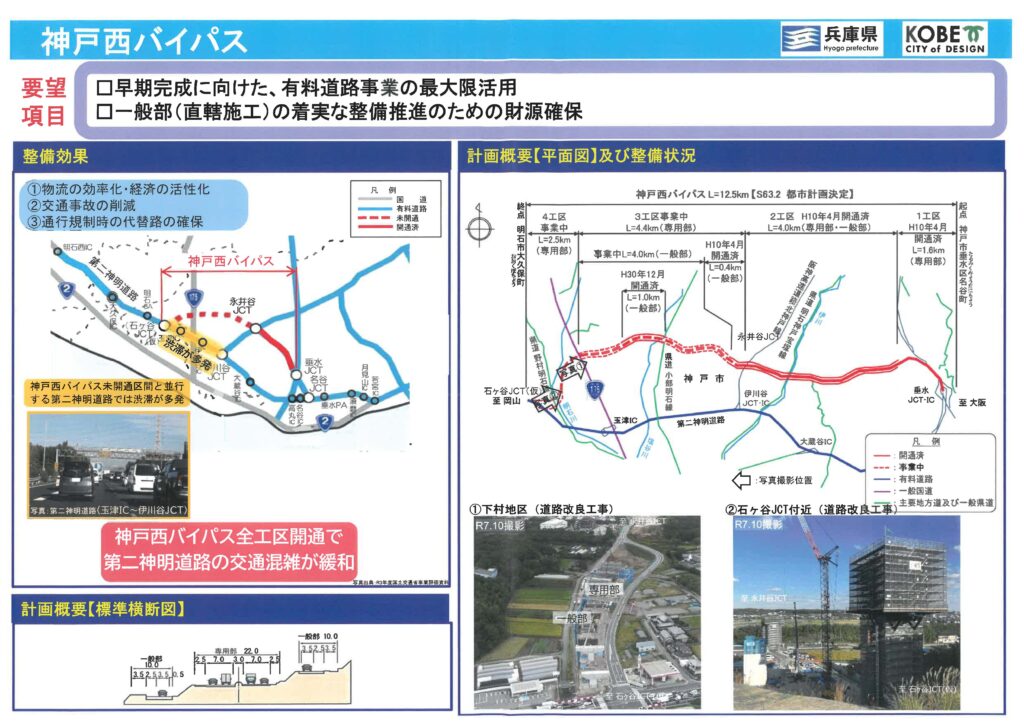また、神戸西バイパスにおいても、下村地区や石ケ谷JCT付近での工事が目に見える形で進捗しています。