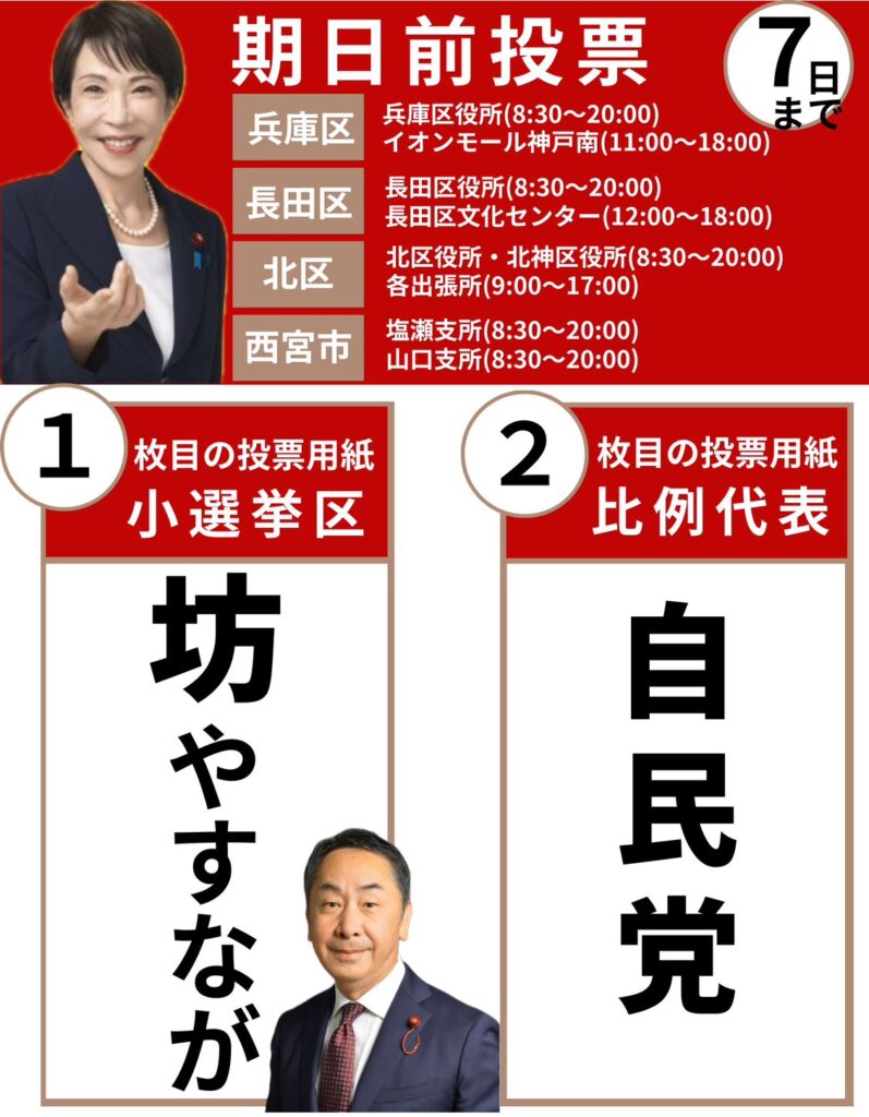 兵庫2区は長年、自公協力区として26年間自民党候補を立てずに我慢を続けてきた地域です。連立解消に伴い、ようやく「公認申請せよ」との通達を受け、満を持して手を挙げたのが坊やすながでした。